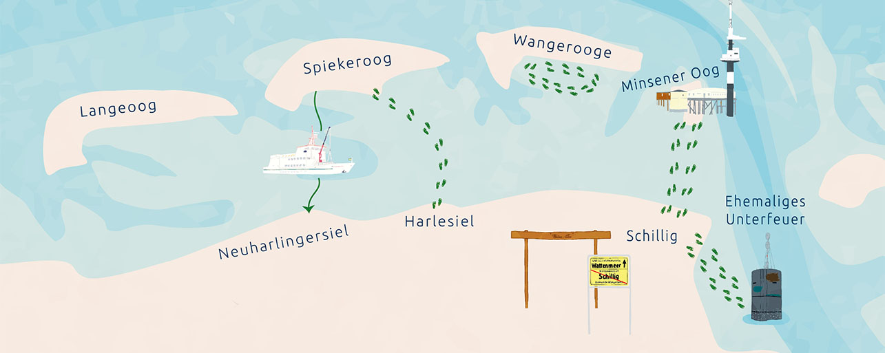 Das Wattenmeer zwischen dem Festland und der Insel Wangerooge wurde schon im Mittelalter über den sogenannten Strickpad durchquert. Eine jahrhundertelange Tradition, ein Kulturgut, dass heute allerdings per Verordnung verboten ist.